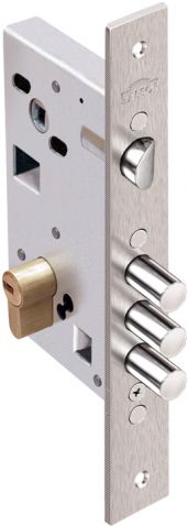 Замок врезной цилиндровый Кремень 1.03.25 предназначен для внешних, внутренних и межкомнатных дверей. 3 ригеля диаметром 12 мм, под фалевую ручку, универсальный. Цвет: никель.