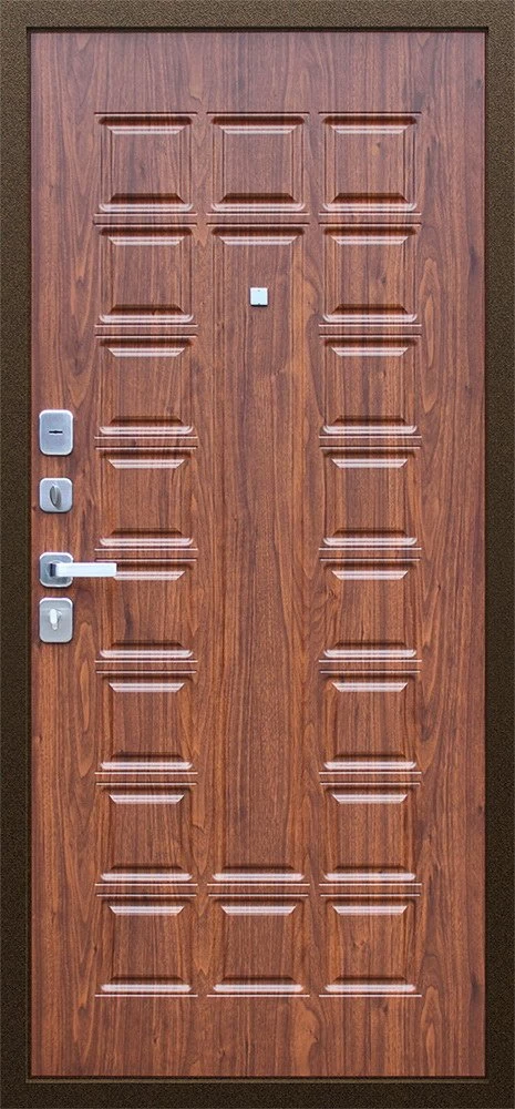Надежная входная Дверь Спартак Орех темный премиум класса по цене 36 305 руб. Большая толщина стали защитит от проникновения в ваш дом, квартиру или коттедж. Используется очень качественная фурнитура: замки, цилиндры, ручки, защелки. Покрытие и отделка двери изготовлено под внимательным контролем производителя. Дверь имеет долгий срок службы и гарантию.
