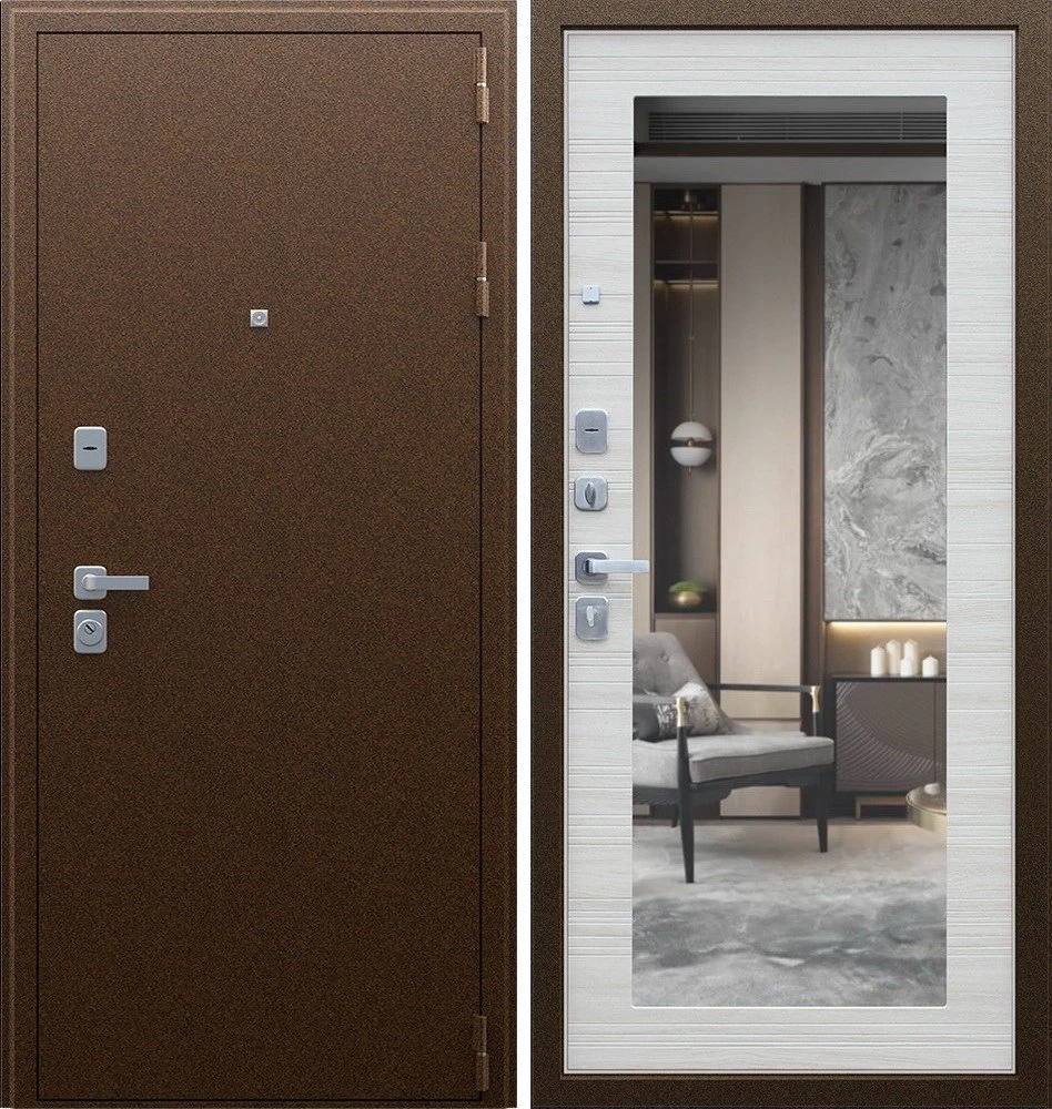 Надежная входная Дверь Спартак с зеркалом Акация Светлая Поперечная премиум класса по цене 38 605 руб. Большая толщина стали защитит от проникновения в ваш дом, квартиру или коттедж. Используется очень качественная фурнитура: замки, цилиндры, ручки, защелки. Покрытие и отделка двери изготовлено под внимательным контролем производителя. Дверь имеет долгий срок службы и гарантию.