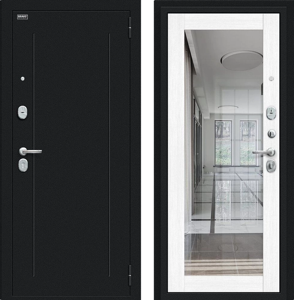 Надежная входная Дверь Браво Флэш Букле черное/Snow Melinga премиум класса по цене 35 055 руб. Большая толщина стали защитит от проникновения в ваш дом, квартиру или коттедж. Используется очень качественная фурнитура: замки, цилиндры, ручки, защелки. Покрытие и отделка двери изготовлено под внимательным контролем производителя. Дверь имеет долгий срок службы и гарантию.