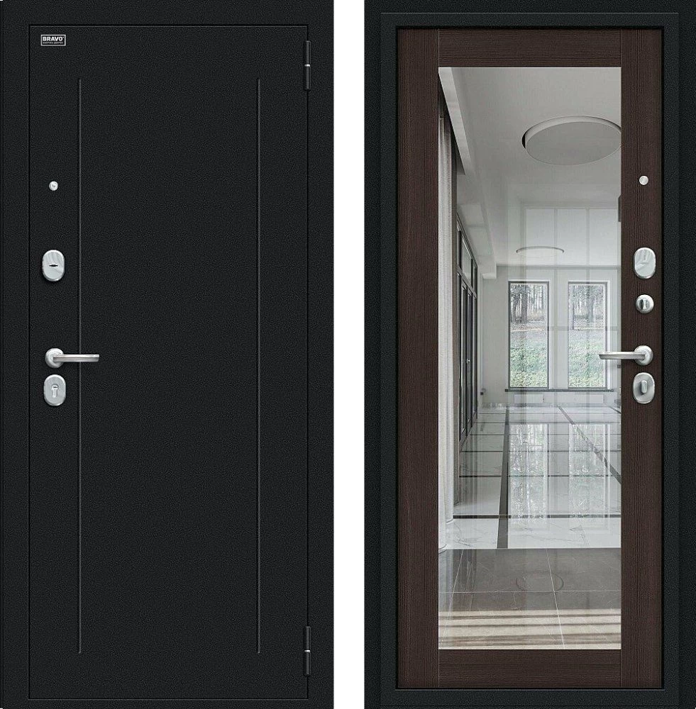 Надежная входная Дверь Браво Флэш Букле черное/Wenge Veralinga премиум класса по цене 35 055 руб. Большая толщина стали защитит от проникновения в ваш дом, квартиру или коттедж. Используется очень качественная фурнитура: замки, цилиндры, ручки, защелки. Покрытие и отделка двери изготовлено под внимательным контролем производителя. Дверь имеет долгий срок службы и гарантию.
