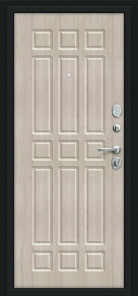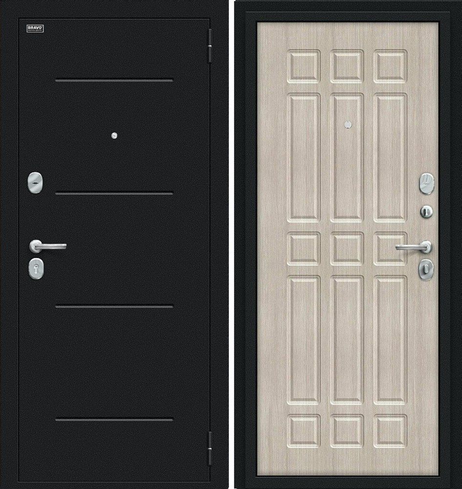 Надежная входная Дверь Браво Мило Букле черное/Cappuccino Veralinga премиум класса по цене 31 855 руб. Большая толщина стали защитит от проникновения в ваш дом, квартиру или коттедж. Используется очень качественная фурнитура: замки, цилиндры, ручки, защелки. Покрытие и отделка двери изготовлено под внимательным контролем производителя. Дверь имеет долгий срок службы и гарантию.