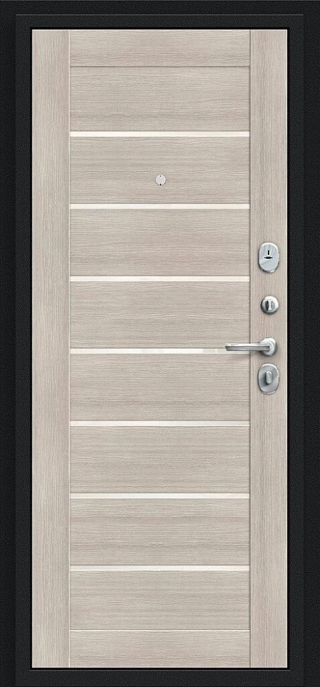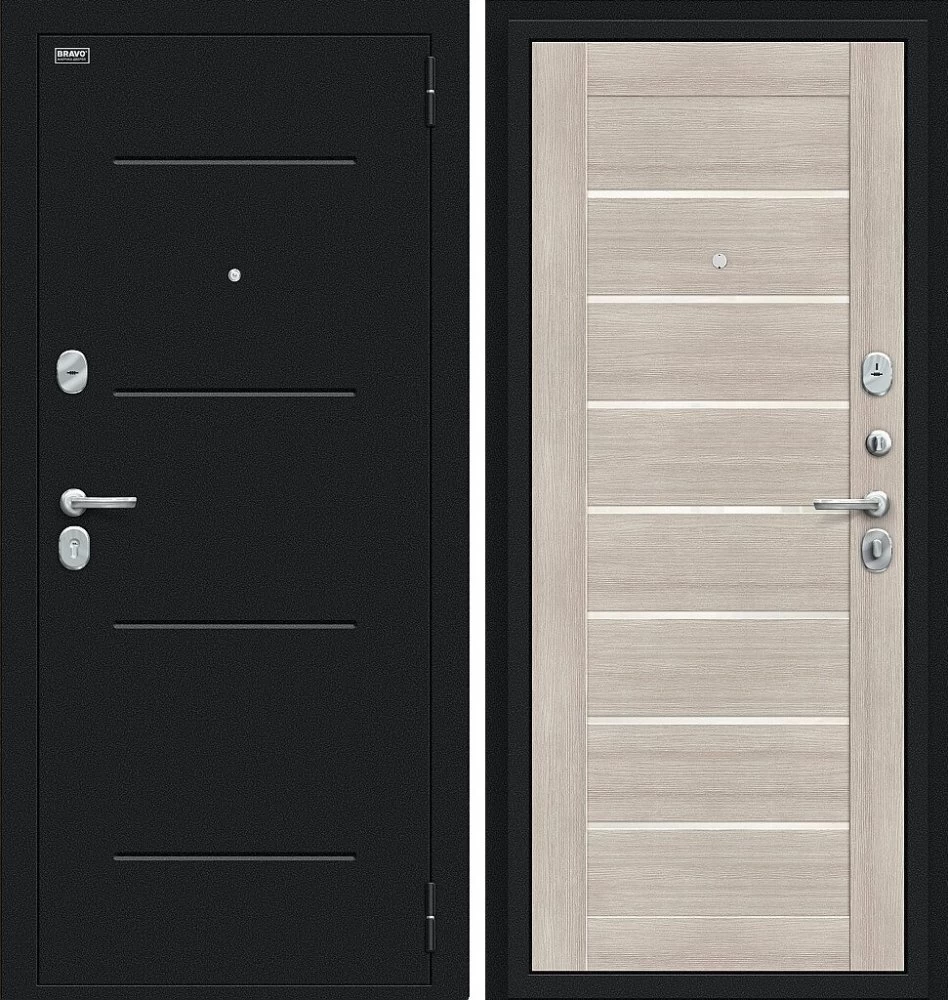 Надежная входная Дверь Браво Техно Букле черное/Cappuccino Veralinga премиум класса по цене 33 455 руб. Большая толщина стали защитит от проникновения в ваш дом, квартиру или коттедж. Используется очень качественная фурнитура: замки, цилиндры, ручки, защелки. Покрытие и отделка двери изготовлено под внимательным контролем производителя. Дверь имеет долгий срок службы и гарантию.