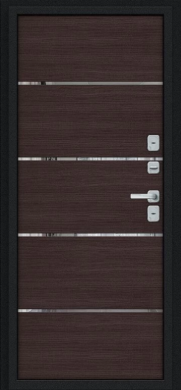 Надежная входная Дверь Браво Thermo Лайн/BChrome Букле черное/Wenge Melinga премиум класса по цене 48 355 руб. Большая толщина стали защитит от проникновения в ваш дом, квартиру или коттедж. Используется очень качественная фурнитура: замки, цилиндры, ручки, защелки. Покрытие и отделка двери изготовлено под внимательным контролем производителя. Дверь имеет долгий срок службы и гарантию.