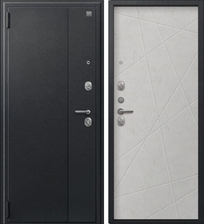 Надежная входная Дверь A-03 черный сатин - бетон светлый премиум класса по цене 31 935 руб. Большая толщина стали защитит от проникновения в ваш дом, квартиру или коттедж. Используется очень качественная фурнитура: замки, цилиндры, ручки, защелки. Покрытие и отделка двери изготовлено под внимательным контролем производителя. Дверь имеет долгий срок службы и гарантию.
