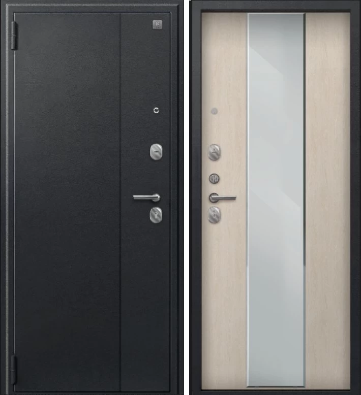 Надежная входная Дверь A-04 черный сатин - седой дуб зеркало премиум класса по цене 36 205 руб. Большая толщина стали защитит от проникновения в ваш дом, квартиру или коттедж. Используется очень качественная фурнитура: замки, цилиндры, ручки, защелки. Покрытие и отделка двери изготовлено под внимательным контролем производителя. Дверь имеет долгий срок службы и гарантию.