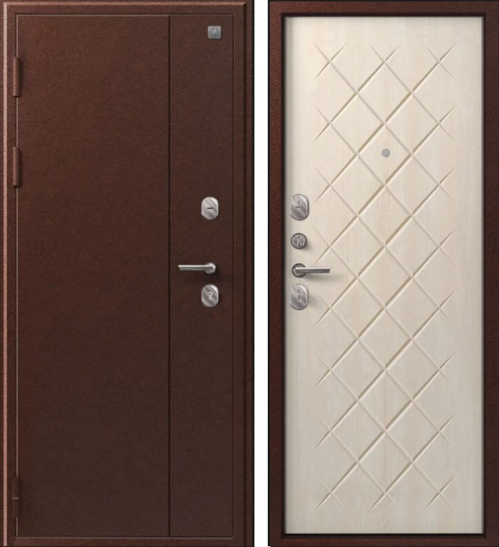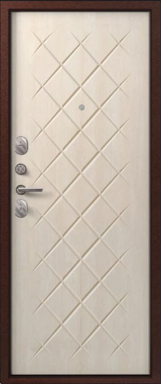 Надежная входная Дверь V-02 медь антик - седой дуб премиум класса по цене 38 955 руб. Большая толщина стали защитит от проникновения в ваш дом, квартиру или коттедж. Используется очень качественная фурнитура: замки, цилиндры, ручки, защелки. Покрытие и отделка двери изготовлено под внимательным контролем производителя. Дверь имеет долгий срок службы и гарантию.