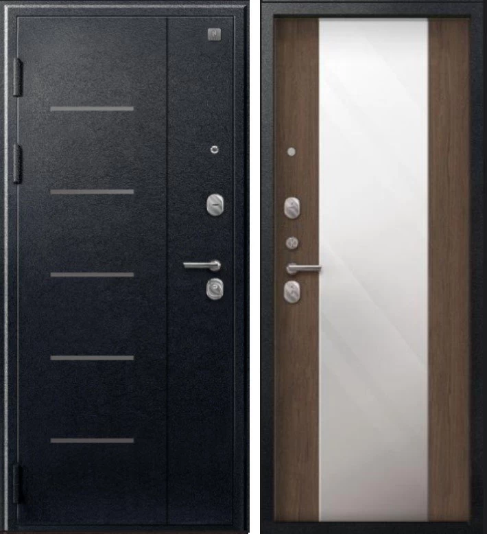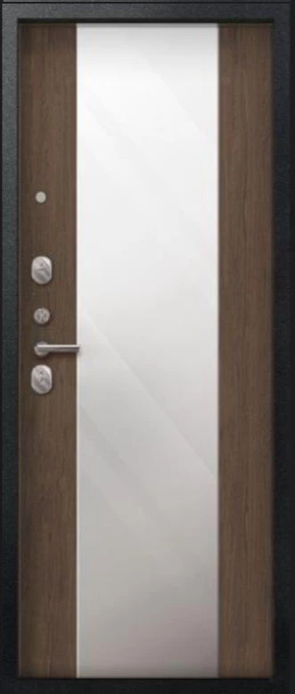 Надежная входная Дверь V-04 Черный муар - Миндаль Зеркало премиум класса по цене 44 705 руб. Большая толщина стали защитит от проникновения в ваш дом, квартиру или коттедж. Используется очень качественная фурнитура: замки, цилиндры, ручки, защелки. Покрытие и отделка двери изготовлено под внимательным контролем производителя. Дверь имеет долгий срок службы и гарантию.