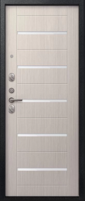 Надежная входная Дверь V-05 Черный муар - Лиственница светлая премиум класса по цене 44 105 руб. Большая толщина стали защитит от проникновения в ваш дом, квартиру или коттедж. Используется очень качественная фурнитура: замки, цилиндры, ручки, защелки. Покрытие и отделка двери изготовлено под внимательным контролем производителя. Дверь имеет долгий срок службы и гарантию.