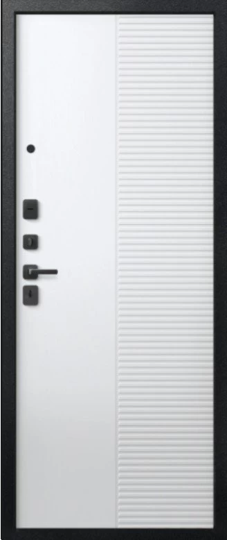 Надежная входная Дверь V-18 Черный муар + Кашемир графит - Кашемир Белый премиум класса по цене 48 855 руб. Большая толщина стали защитит от проникновения в ваш дом, квартиру или коттедж. Используется очень качественная фурнитура: замки, цилиндры, ручки, защелки. Покрытие и отделка двери изготовлено под внимательным контролем производителя. Дверь имеет долгий срок службы и гарантию.