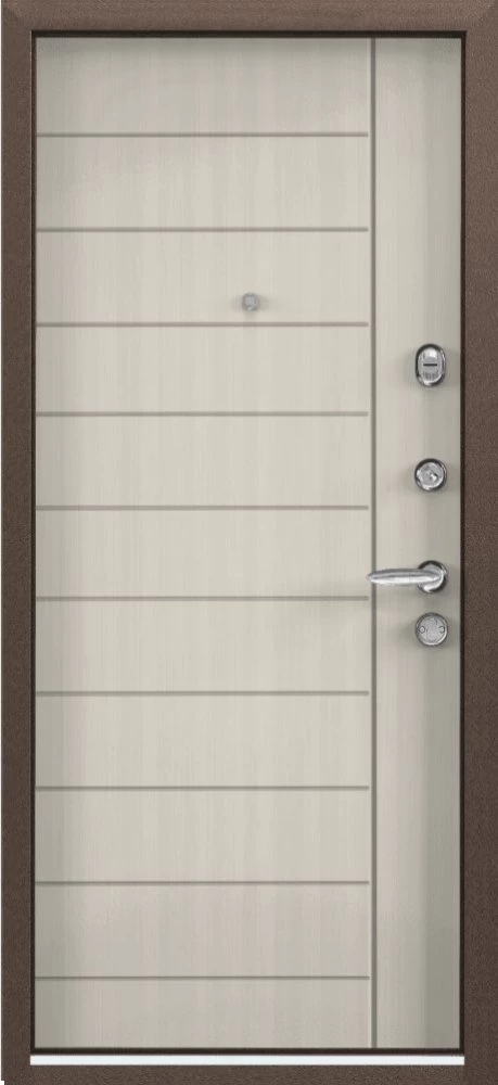 Надежная входная Дверь Цербер 3К(Чёрная) Горизонт Латте(Сменная панель) премиум класса по цене 44 605 руб. Большая толщина стали защитит от проникновения в ваш дом, квартиру или коттедж. Используется очень качественная фурнитура: замки, цилиндры, ручки, защелки. Покрытие и отделка двери изготовлено под внимательным контролем производителя. Дверь имеет долгий срок службы и гарантию.